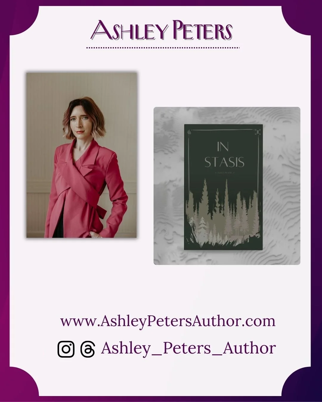 Author Ashley Peters resides in East Austin, Texas, with her partner, Danny, and their three rescue mutts—Bently, Fredrik, and Bruno. A self-declared bibliophile and lifelong storyteller, she has been crafting tales since childhood, along the way writing for various scholarships and minor publications before fully committing herself to the realm of novel creation.
